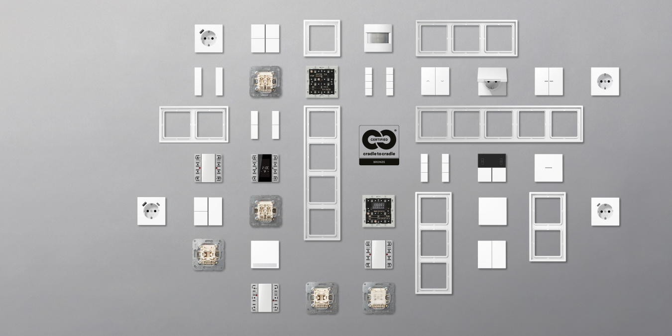 Mit dem Bekenntnis zur Produktion in Deutschland setzt Jung schon seit jeher auf nachhaltige Entwicklungs- und Herstellungsprozesse. Dazu gehören auch kurze Logistikwege der Zulieferer, eine energieeffiziente Produktion und umweltfreundliche Verpackungen aus Altpapier, aber auch Präzision in der handwerklichen Verarbeitung und hohe Designqualität. Sie sorgen letztlich dafür, dass die Produkte beständig und robust sind und den gesamten Lebenszyklus der Architektur, der immer stärker in das Bewusstsein der Nutzer/-innen rückt, überdauern. Mit der erfolgreichen Zertifizierung „Cradle to Cradle Certified Bronze“ für LS 990, LS Cube, AS 500, A 550, A Flow, A Creation inklusive der hochdiffizilen KNX-Sensorik wird das Bestreben von Jung um Nachhaltigkeit und verantwortungsvolle Produktion nun eindrucksvoll belegt.