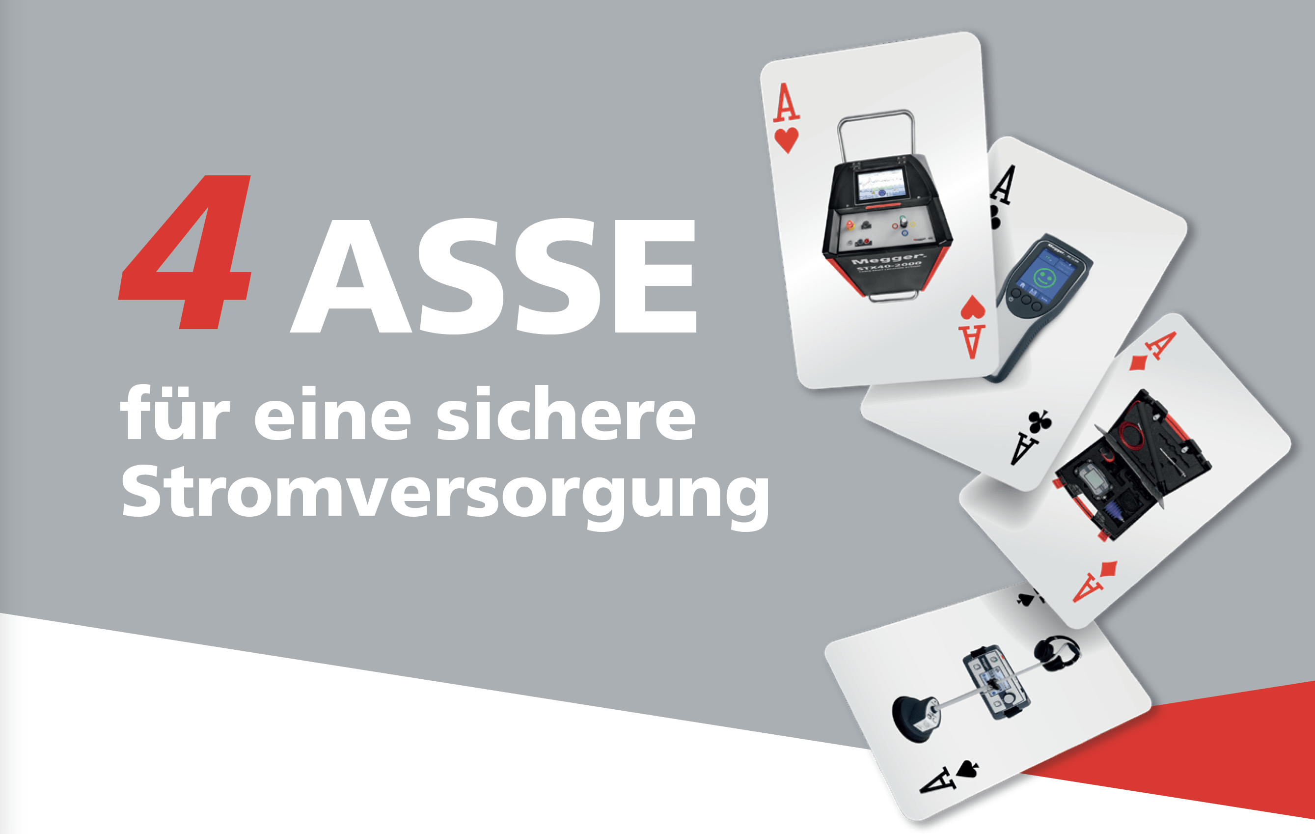 Unentdeckte Kabelfehler können große Schäden anrichten und im schlimmsten Fall auch Menschenleben gefährden. Um Schwachstellen rechtzeitig zu detektieren, zieht Megger jetzt eine Auswahl seiner Top-Produkte aus dem Ärmel. Diese 4 Asse gewinnen immer!
