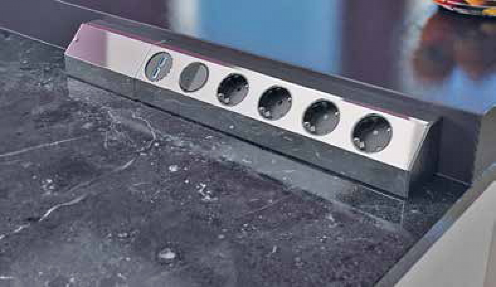 Das Aluminiumprofil in Edelstahl-Optik bietet ein zeitloses Design und ist somit für alle Küchen geeignet. Die Steckdosenleiste ist in mehreren Ausführungen erhältlich (mit/ohne Wippschalter, mit USB-Doppelcharger, mit LED-Beleuchtung).