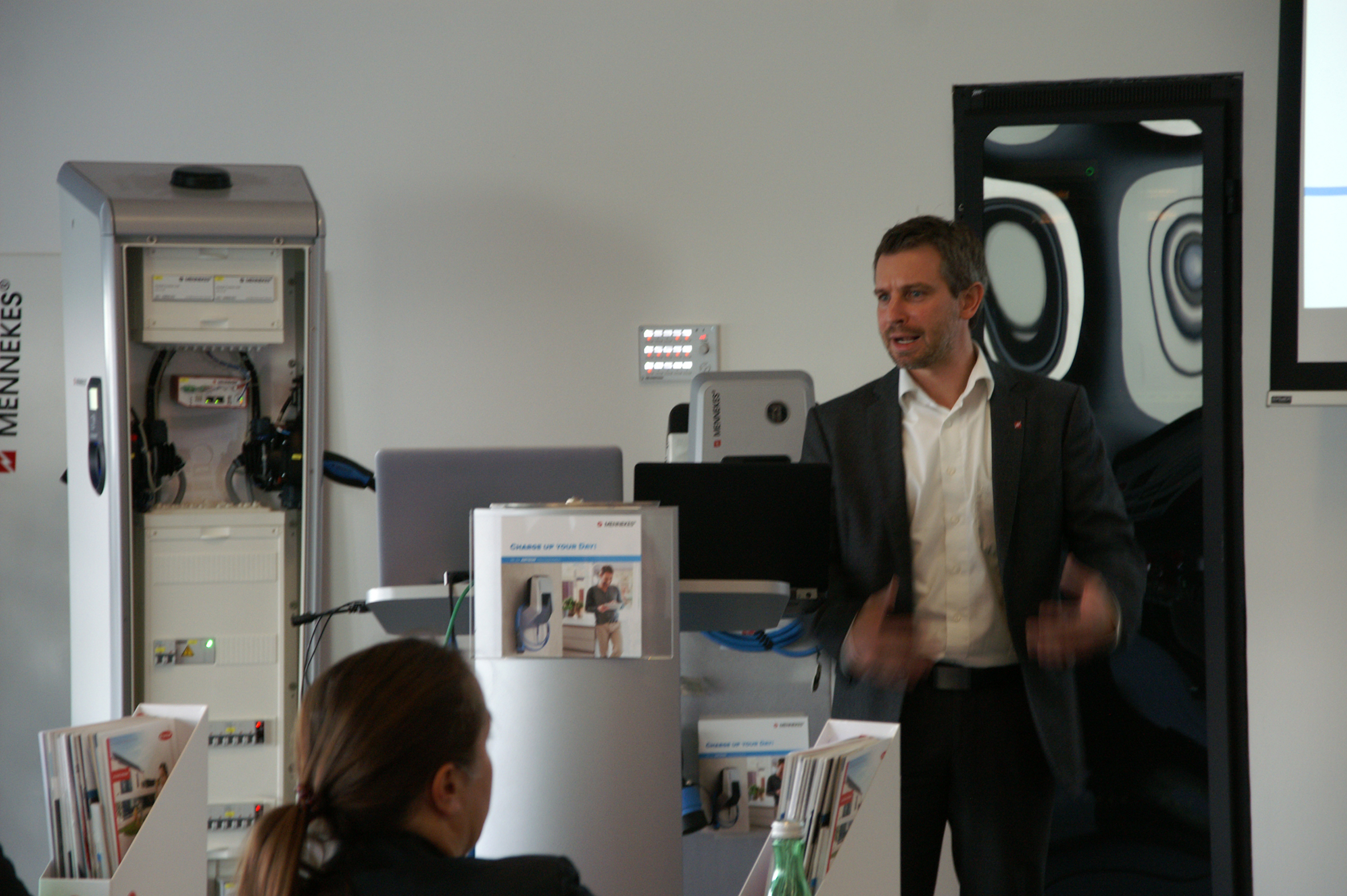Einen kurzen Einblick in die von Siblik angebotene Produktvielfalt zu diesen und vielen anderen Themenstellungen lieferten der KNX-Experte Michael Wolfram sowie der Spezialist für die Bereiche Installationstechnik und Industrie Andreas Mayer: Sie präsentierten sowohl Bewährtes – u. a. energieeffiziente Lösungen für luftdichte Gebäude – als auch jede Menge Neues – beispielsweise werkzeuglos zu öffnende Betoneinbaugehäuse für Lautsprecher und Leuchten, komfortabel per App programmierbare digitale Zeitschaltuhren oder neue Jalousieaktoren.