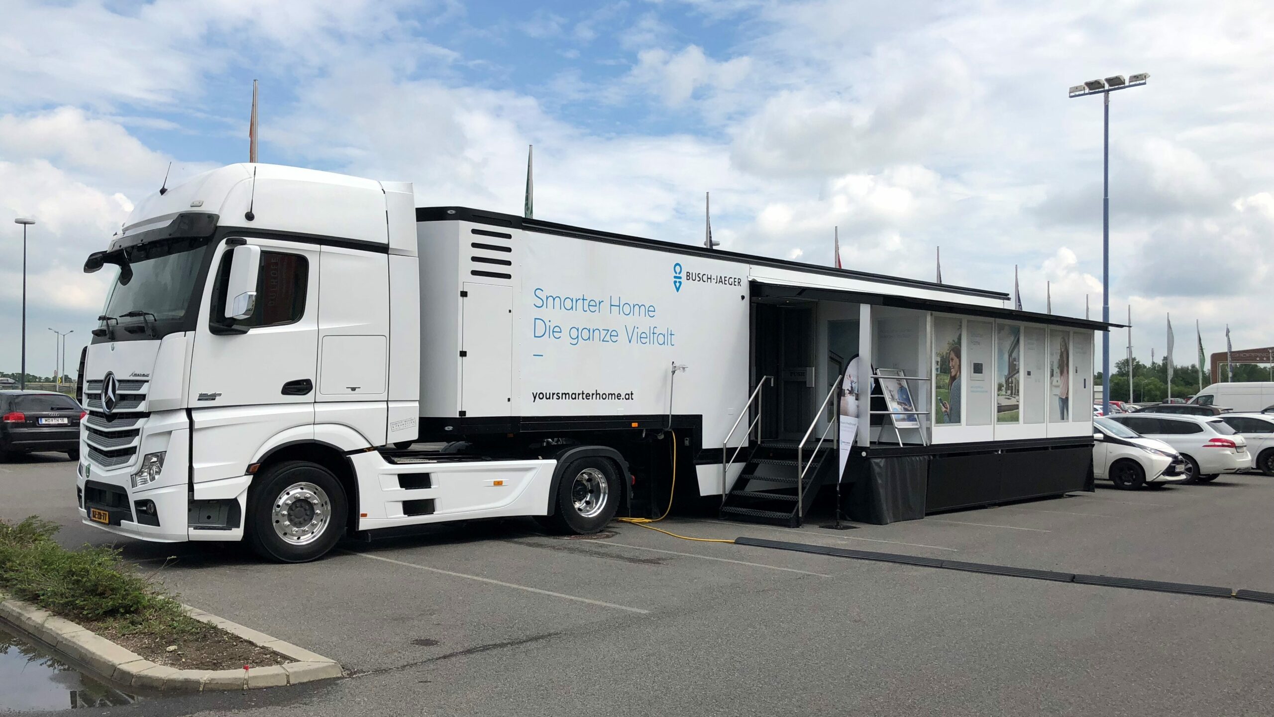 Unter dem Motto »yoursmarterhome.at« tourt der Busch-free@home-Truck auf den Frühjahrs-Hausbaumessen und macht die Welt des »Smart Home« greifbar.