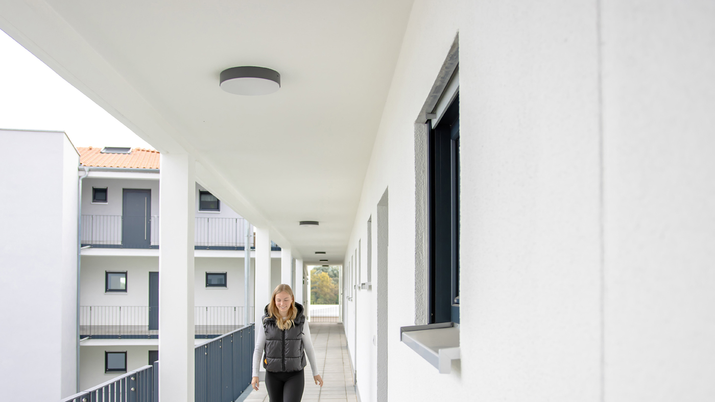 RS Pro A-Serie sorgt in Laubengängen für automatisches Licht und für mehr Sicherheit und Komfort (Bild: Steinel)