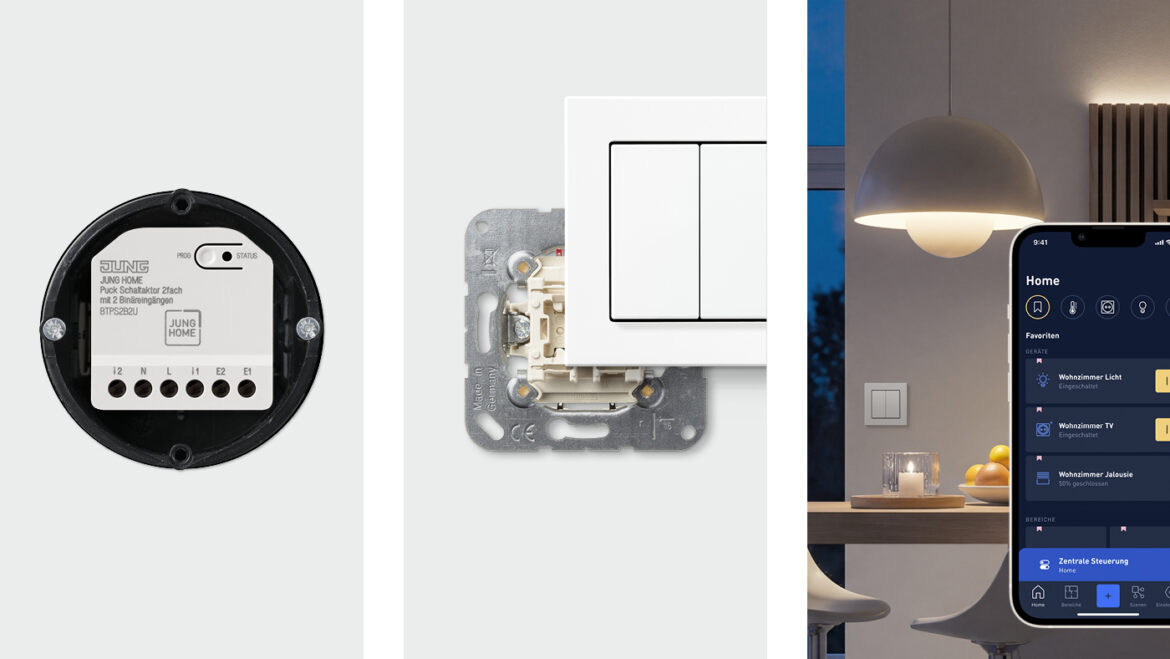 Mit den Jung Home Pucks wird die Lichtsteuerung in Wohnbauten smart und unkompliziert. Bestehende Installationen lassen sich einfach erweitern – für mehr Komfort, flexible Szenen und Energieeffizienz im Alltag.