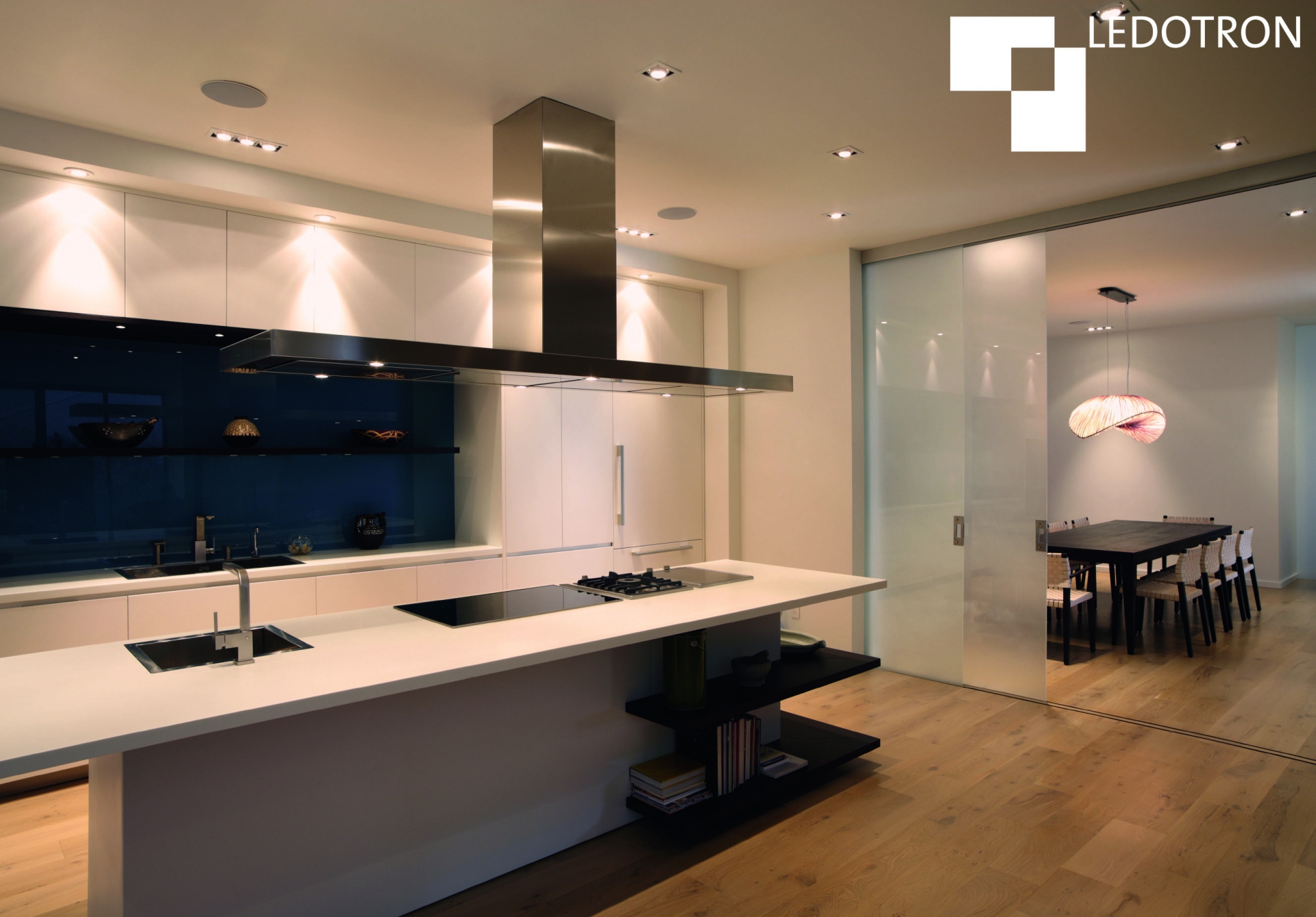 Neben Privathaushalten bietet Ledotron insbesondere für Gewerbeobjekte eine innovative, verlässliche und normenkonforme Technik. Gleichzeitig ist der kompatible Dimmstandard einfach und schnell unter Verwendung vorhandener Leitungen installiert. Ledotron wird zur präferierten Norm für anspruchsvolle Anwender aus Gewerbe und Handel. So setzen seit kurzem in München unter anderem die Aroma Kaffeebar, die Galerie art:ig sowie die Pizzeria »Bei Mario« auf standardisiertes digitales Dimmen.