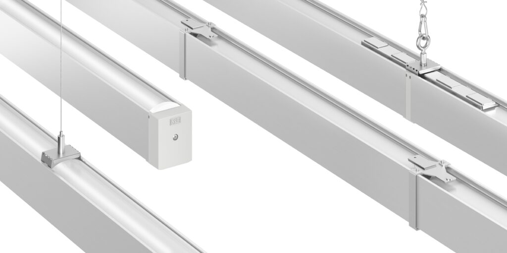 Das revolutionäre Lichtbandsystem bietet jede Menge Zubehör und Features – unter anderem Formverbinder, Wandschienen, Module mit Stromschiene, HACCP und Ballwurfsicherheit.