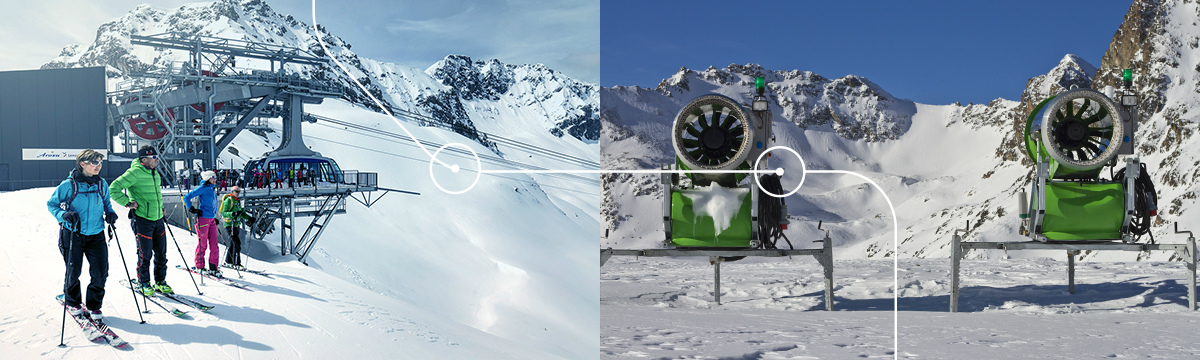 In der Schweiz sind mittlerweile knapp 50 Prozent der Pistenfläche künstlich beschneibar, in Österreich bereits rund 70 Prozent und einige Regionen, etwa in Südtirol, können sogar flächendeckend künstliche Schneeflocken über den Pisten tanzen lassen. Und dank ABB wird der Energie- und Wasserverbrauch für die Erzeugung von Kunstschnee nachhaltiger. So hat das Unternehmen vor der Skiweltmeisterschaft 2017 Motoren für ein großflächiges Beschneiungssystem in St. Moritz geliefert. Dafür wurde eigens ein künstlicher Speichersee, zehn Meter tief und groß wie sieben Fußballfelder, angelegt.