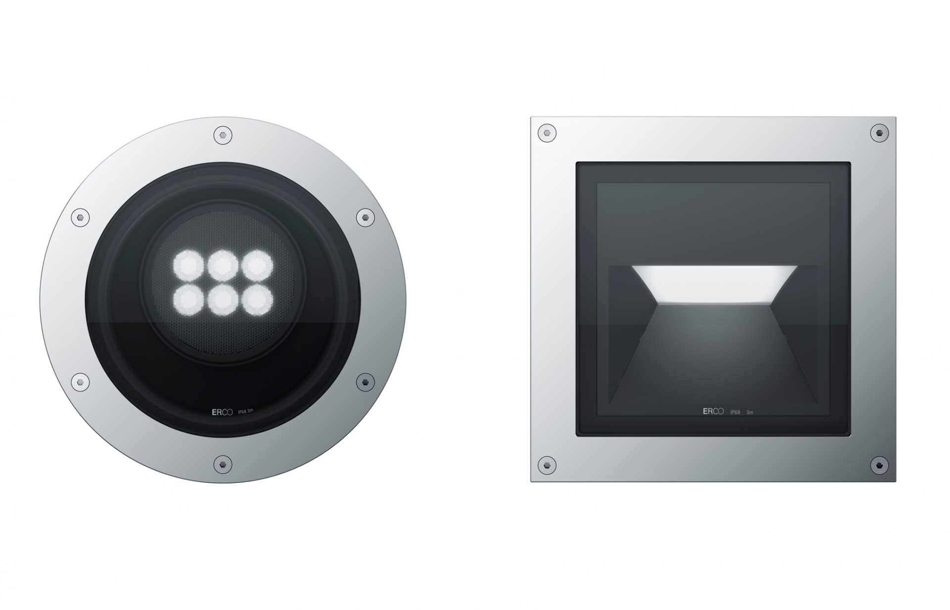 Die Präzision, die Erco über Jahre hinweg für den Innenraum entwickelt hat, wird jetzt auch auf den Außenraum übertragen: Im Inneren des stabilen Gehäuses überzeugt Tesis mit präziser Lichttechnik, die selbst den vielschichtigen Ansprüchen an Museumsbeleuchtung genügen würde. Ob für die gleichmäßige Wandflutung oder die akzentuierte Beleuchtung – Tesis gewährleistet durch innovative LED-Technik eine leistungsfähige und zuverlässige Außenbeleuchtung. Das Programm enthält gleichmäßige Linsenwandfluter, beispielsweise für Fassadenflächen, ebenso wie pointierte Richtstrahler oder breitstrahlende Uplights, etwa für die Beleuchtung von Bäumen. Als Wandfluter kann Tesis mit einem großen Leuchtenabstand von bis zum 1,5fachen des Wandabstandes besonders effizient vertikale Flächen inszenieren. Die hochabgeblendeten Lichtquellen im Boden überzeugen durch sorgfältiges Design und präzise Lichtverteilungen. Um unterschiedlichen Architektur- und Lichtkonzepten gerecht zu werden, sind die Tesis-Leuchten in runder oder eckiger Bauform verfügbar. Durch die geringe Einbautiefe gestaltet sich der Einbau besonders unkompliziert.