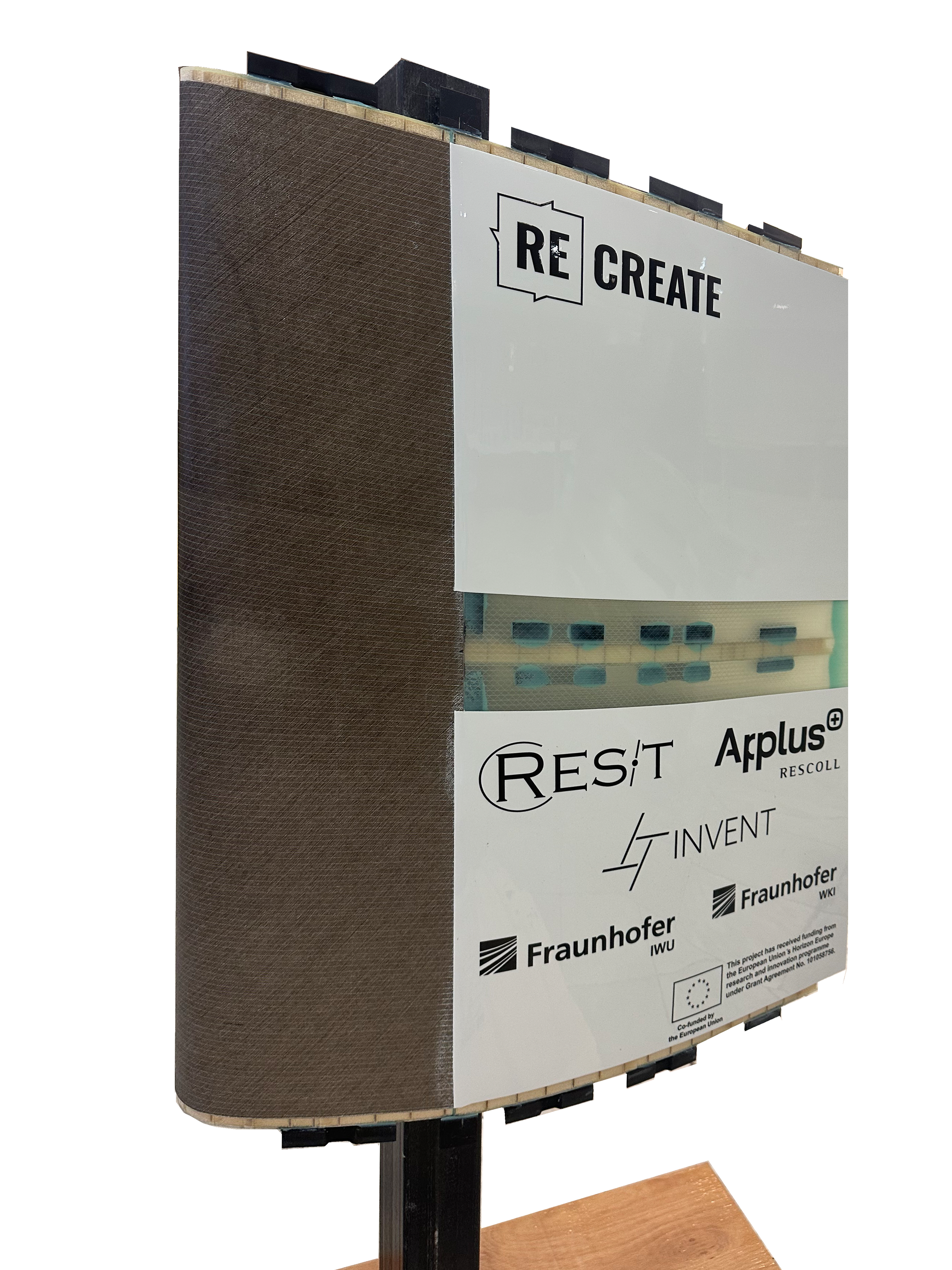 Im EU-Projekt Recreate arbeiteten rund 20 Partner aus Forschung und Industrie koordiniert vom Politecnico di Milano (Italien), an Recyclingtechnologien für kreislauffähige Faserverbundkunststoffe. An der Gestaltung und Fertigung des Demonstrators für wiederverwendbare Faserverbundstrukturen eines Windkraftrotorblatts waren neben den Instituten Fraunhofer IWU und Fraunhofer WKI die Invent GmbH, RES-T und Rescoll Applus beteiligt.