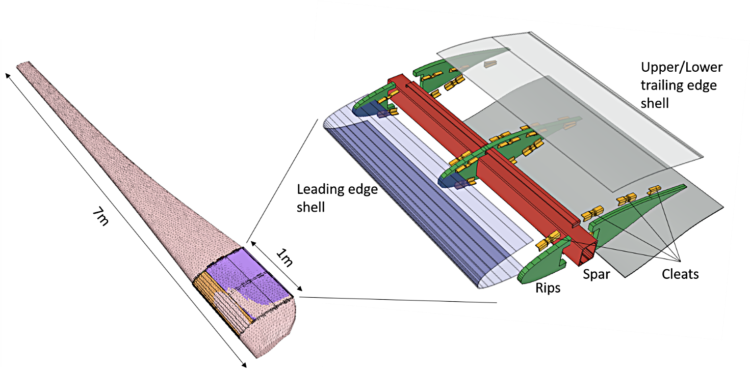 Rotorblattsegment zeigt kreislauffähiges Design mit austauschbarer Vorderkante für längere Nutzungsdauer (Bild: Fraunhofer IWU)