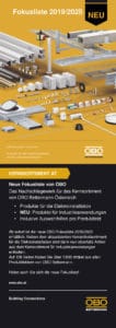 Die aktuelle Ausgabe der OBO Fokusliste 2019/2020 kann kostenlos unter angefordert werden oder als PDF heruntergeladen werden.