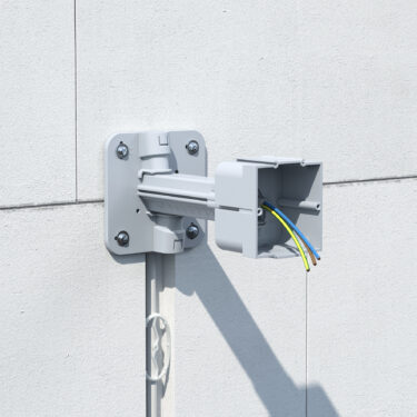 Der Teleskop-Geräteträger lässt sich an Dämmstoffstärken von 80 bis 200 mm anpassen und ermöglicht eine stabile Befestigung an Mauerwerk, Beton oder Holzwerkstoffen. Für Schalter- und Steckdoseninstallationen hat Kaiser eine stufenlos verstellbare Teleskop-Gerätedose entwickelt, die sich auf bis zu drei Geräteeinheiten erweitern lässt. Maßmarkierungen am Trägerarm erleichtern die Anpassung an die Dämmstärke, während die überstreich- und überputzbare Anschraubfläche eine saubere Integration in die Fassaden- oder Deckenfläche garantiert.